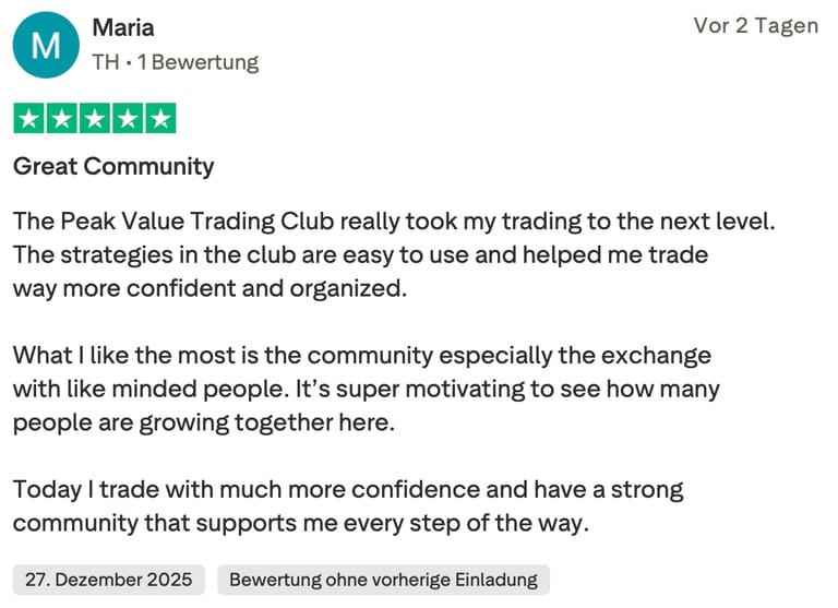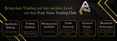Der Peak Value Trading Club ist ein weltweit führender Tradingclub, der in kürzester Zeit zum einen der erfolgreichsten Clubs in Europa aufgestiegen ist. Unser Hauptaugenmerk liegt darauf, Anfängern als auch Fortgeschrittenen Tradern die wichtigsten Aspekte des Tradings näher zu bringen und sich mit anderen Tradern auszutauschen, um ihr eigenes Trading auf das nächste Level zu bringen und somit auf der richtigen Seite des Marktes zu bleiben.