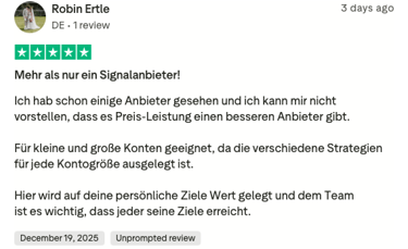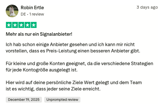 Wir bieten auch „ad-hoc“ Updates für unsere Mitglieder, wenn sich die Marktbedingungen ändern. Dies betrifft sowohl Aktien, Devisen, Rohstoffe und Indizes, um den Markttrends einen Schritt voraus zu sein. Zusätzlich bieten wir unseren Mitgliedern Kontakt zu professionellen Tradern durch Trading-Rooms an, um mit anderen Tradern und auch professionellen Tradern in Kontakt zu treten und voneinander zu lernen.