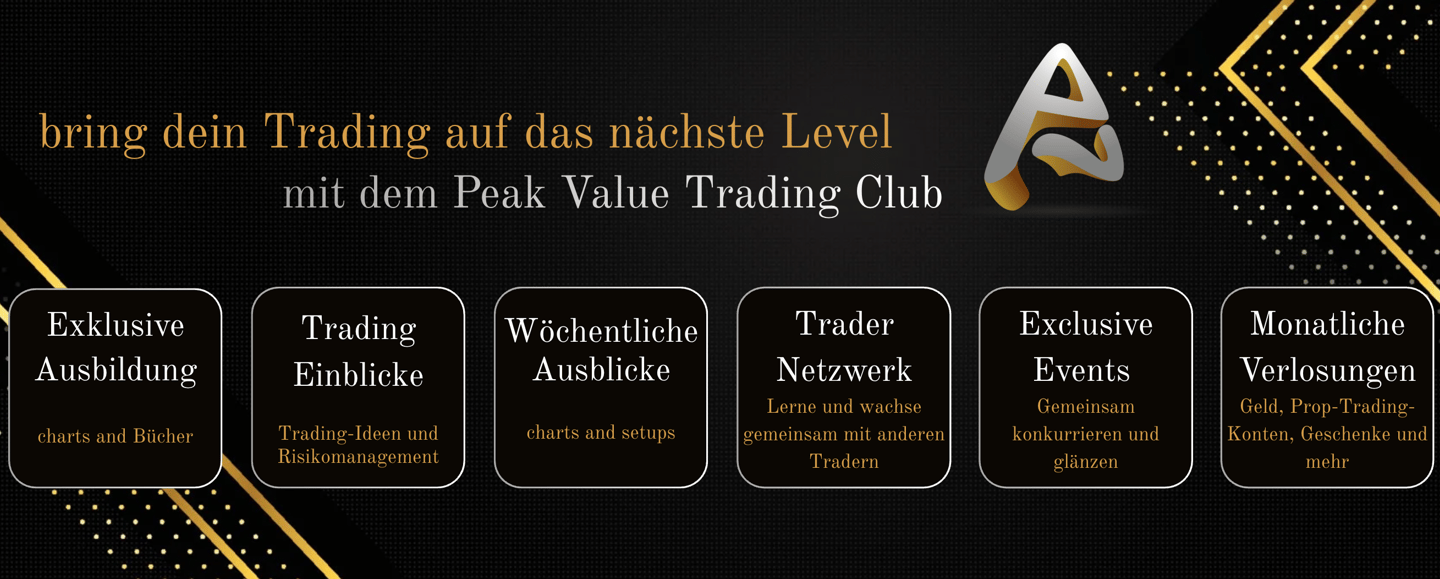 Der Peak Value Trading Club ist ein weltweit führender Tradingclub, der in kürzester Zeit zum einen der erfolgreichsten Clubs in Europa aufgestiegen ist. Unser Hauptaugenmerk liegt darauf, Anfängern als auch Fortgeschrittenen Tradern die wichtigsten Aspekte des Tradings näher zu bringen und sich mit anderen Tradern auszutauschen, um ihr eigenes Trading auf das nächste Level zu bringen und somit auf der richtigen Seite des Marktes zu bleiben.