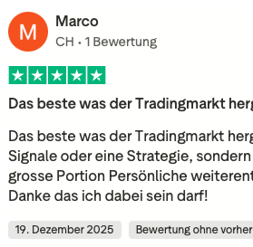 Wir bieten auch „ad-hoc“ Updates für unsere Mitglieder, wenn sich die Marktbedingungen ändern. Dies betrifft sowohl Aktien, Devisen, Rohstoffe und Indizes, um den Markttrends einen Schritt voraus zu sein. Zusätzlich bieten wir unseren Mitgliedern Kontakt zu professionellen Tradern durch Trading-Rooms an, um mit anderen Tradern und auch professionellen Tradern in Kontakt zu treten und voneinander zu lernen.