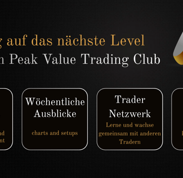 Darüber hinaus bieten wir fortgeschrittenen Tradern einen Einblick in das professionelle Trading an, damit du dein persönliches Trading auf das nächste Level zu bringen. Der Peak Value Trading Club ist für alle, die nicht länger im Dunkeln tappen wollen. Für alle, die Trading ernst nehmen und aus ihrer Leidenschaft eine echte Fähigkeit entwickeln möchten. Wir bringen Trader auf ihr nächstes Level.